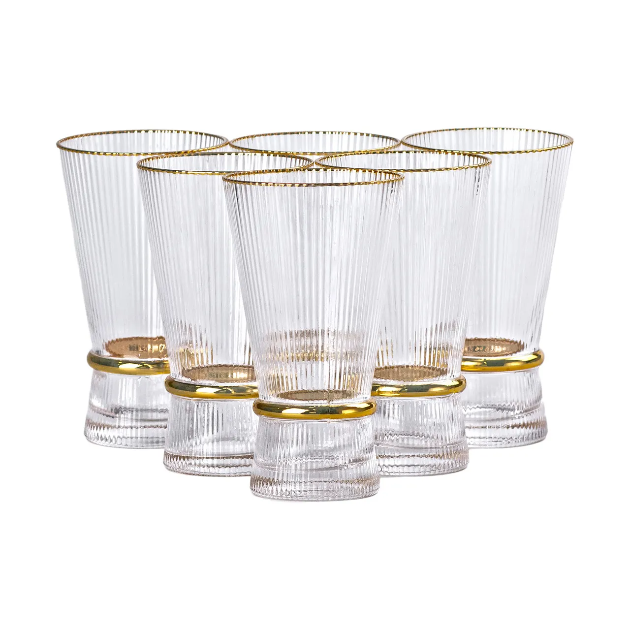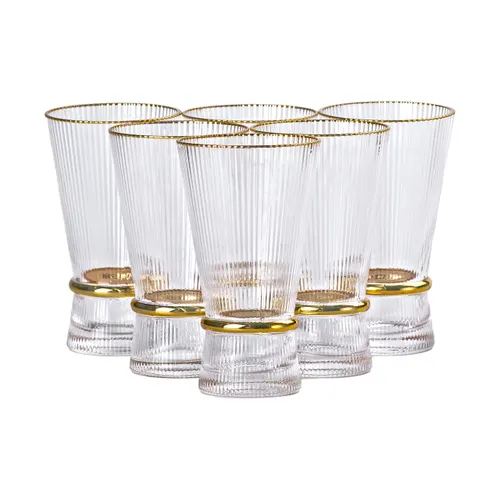 В первую очередь, этот набор из стаканов отличается стильным дизайном с золотым ободком, что выгодно выделяет их среди стандартной посуды. Такой декор отлично впишется в любую сервировку, будь то повседневный ужин или торжественное мероприятие.