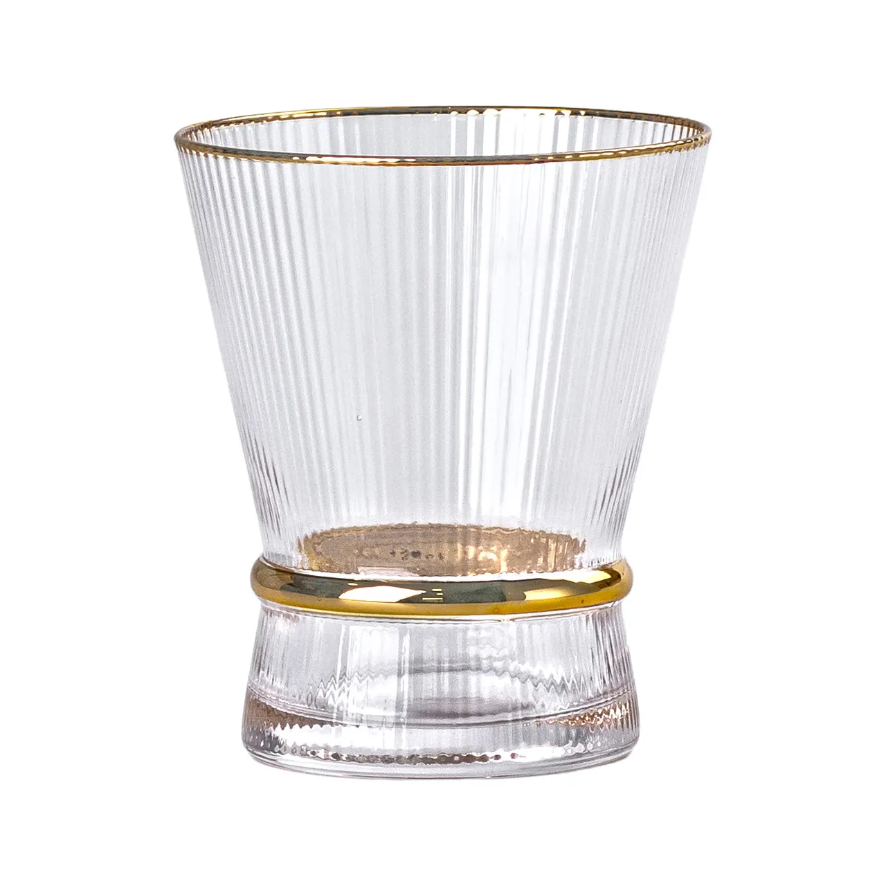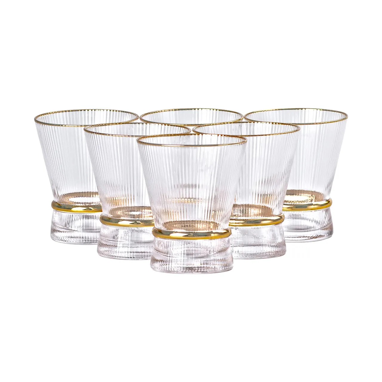 Особенностью набора является гармоничное сочетание классического прозрачного стекла с изящным золотым ободком, что обеспечивает баланс между практичностью и эстетикой. Благодаря лаконичному дизайну стаканы универсальны и не утратят актуальности с течением времени.