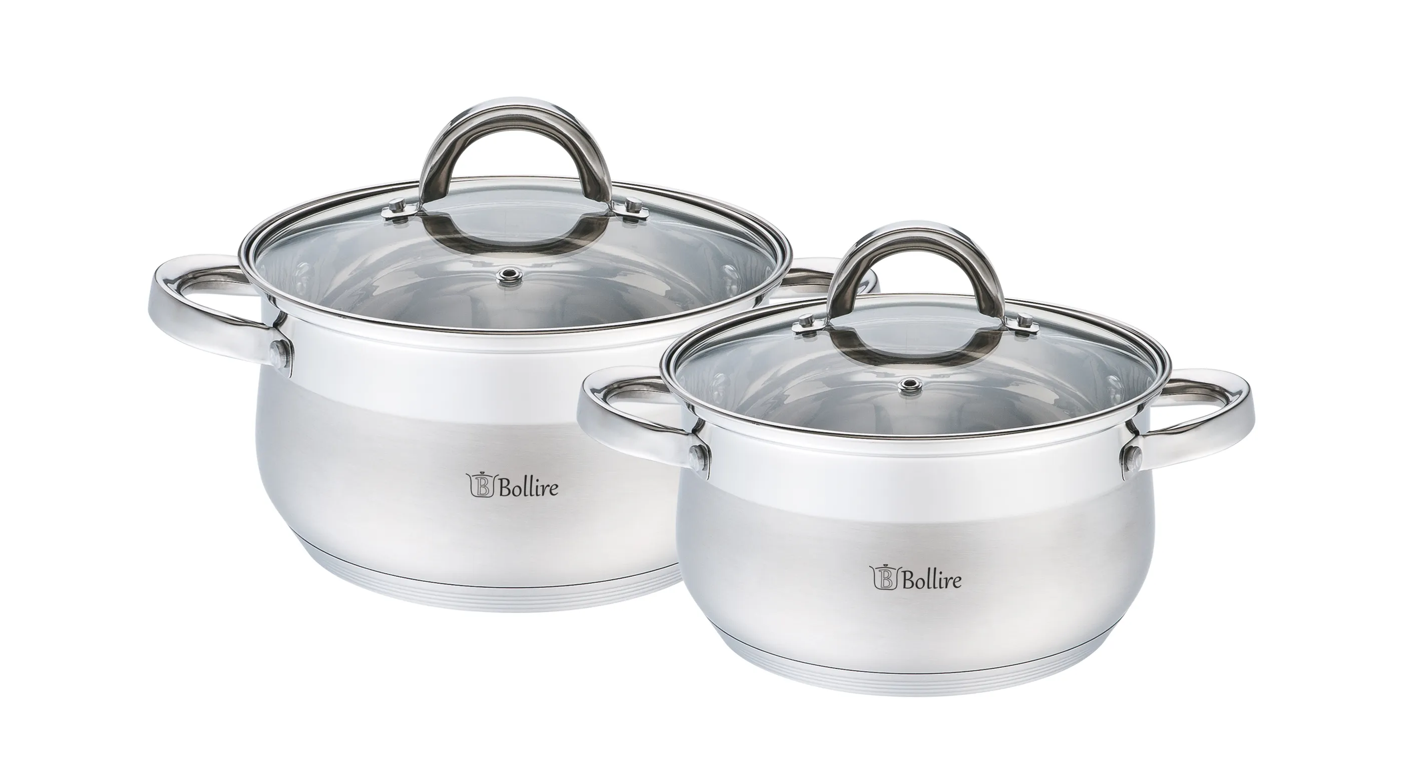 Набор кастрюль BR-4014 4 предметы BOLLIRE — это незаменимый комплект для каждой кухни. В наборе представлено 2 кастрюли и 2 крышки, изготовленные из высококачественной нержавеющей стали AISI 201. Материал крышек — жаропрочное стекло с пароотводом, обеспечивающее удобство в использовании.