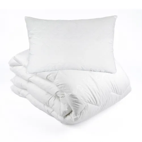 Представляем идеальный комплект для комфортного сна в любое время года: одеяло из полиэфирного волокна и подушка размером 50х70.