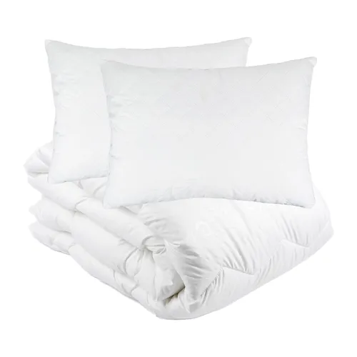 Представляем идеальный комплект для комфортного сна в любое время года: одеяло из полиэфирного волокна и 2 подушки размером 50х70. Этот набор - гармоничное сочетание комфорта, уюта и элегантности, что обеспечит вам спокойный и здоровый сон в течение года.