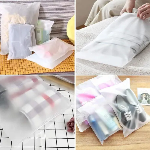 Для долговечности использования рекомендуется хранить пакеты в сухом месте и избегать чрезмерного натяжения замка. При необходимости можно протирать пакеты влажной мягкой тканью, не используя агрессивных химических средств, чтобы сохранить матовую поверхность.