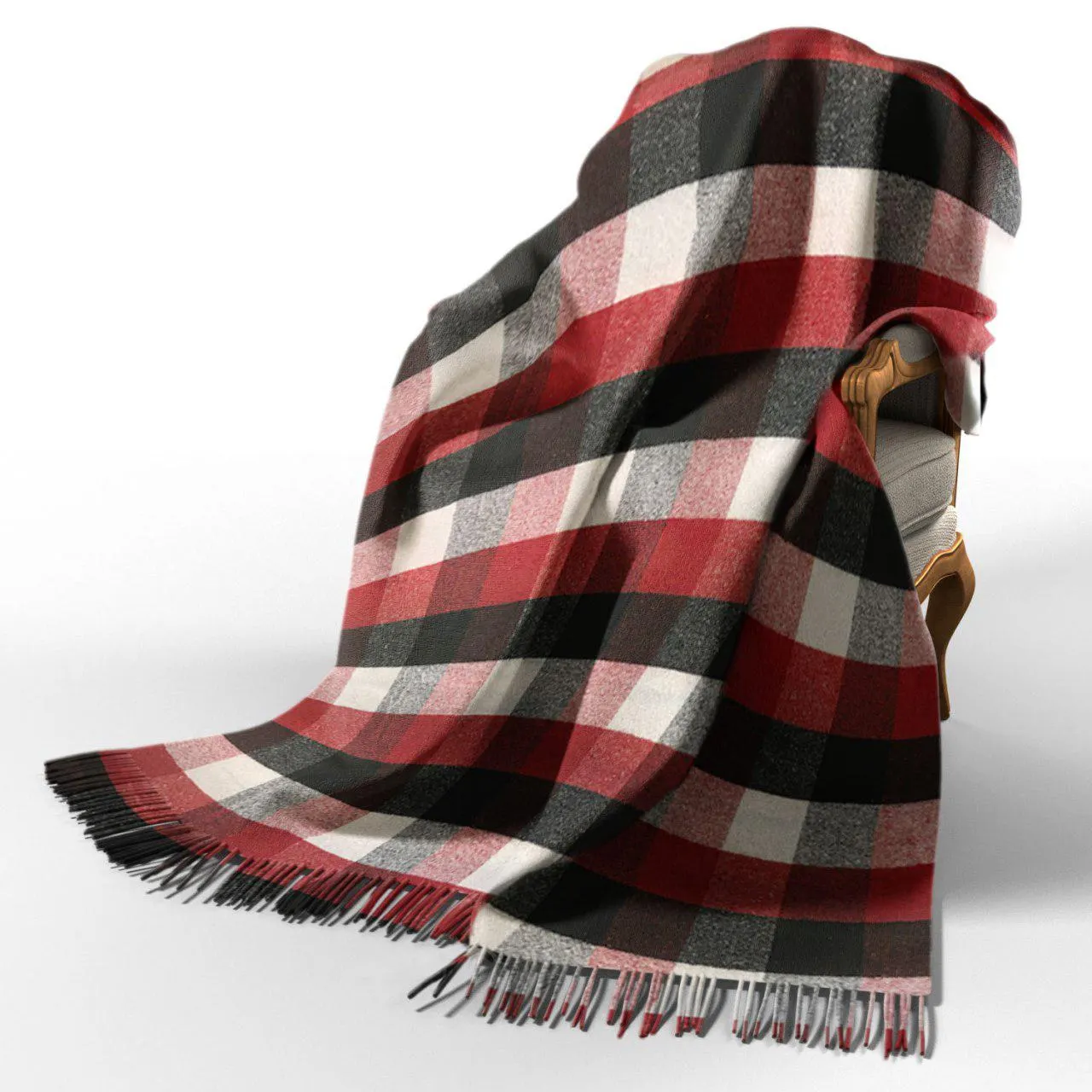 Плед выполнен в классическом дизайне с цветной шотландской клеткой бело-красно-черного оттенка, что придаёт изделию стильный и универсальный вид. Размер 140×200 см позволяет комфортно укрыться одному человеку или использовать его для укращения интерьера.