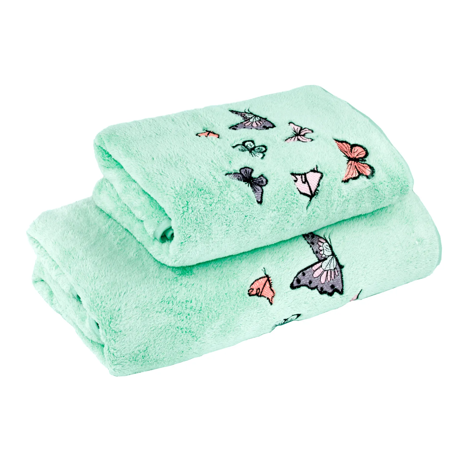 Набор полотенец с вышивкой "Бабочки" включает два изделия разного размера: одно маленькое полотенце 35x75 см и одно крупное 70x140 см. Эти полотенца идеально подходят для любой ванной комнаты или кухни. Они не только обладают высокой поглощенностью, но и сохраняют свою мягкость даже после многочисленных стирок.