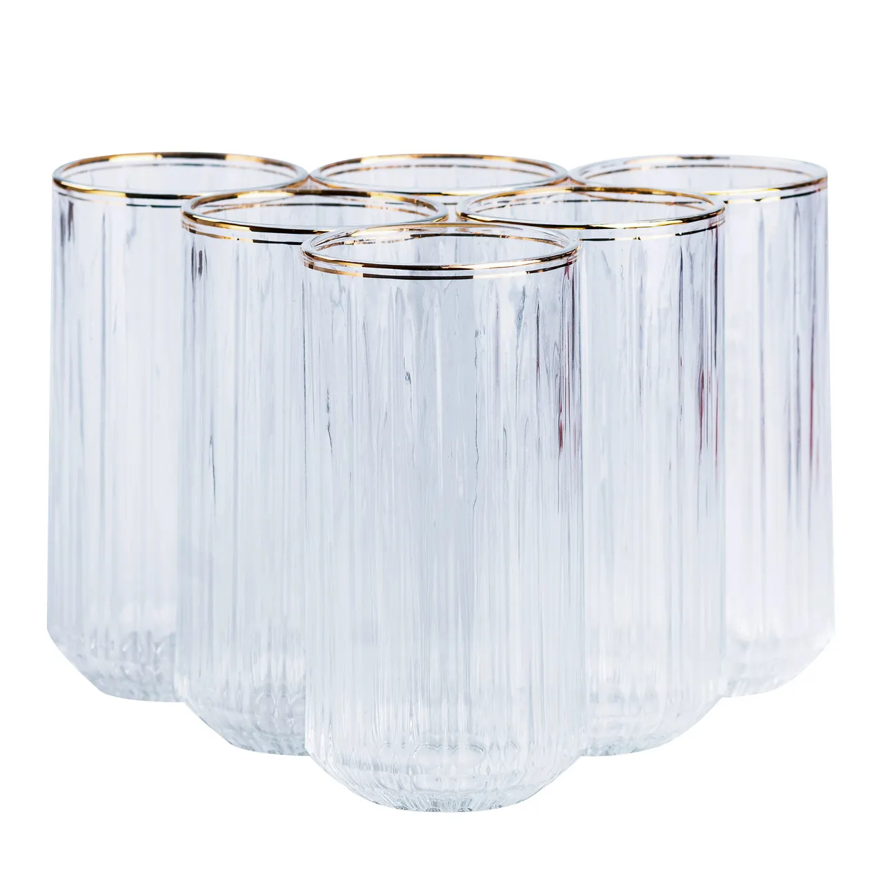 Набор стаканов из 6 штук по 380 мл прозрачный с золотым ободком HP552