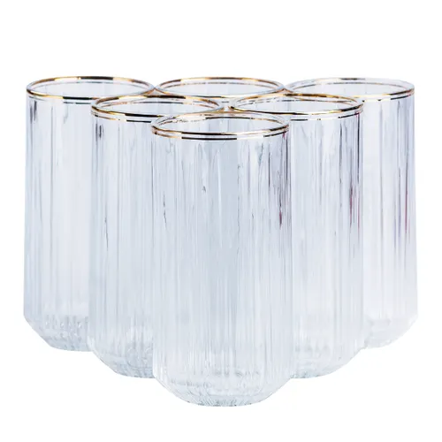 Характеристики "Набор стаканов из 6 штук по 380 мл прозрачный с золотым ободком HP552"