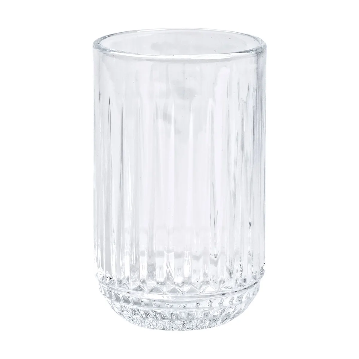 Стеклянные стаканы из прозрачного толстого стекла хорошо сочетаются с минималистичными и классическими стилями сервировки. Ими удобно подавать не только воду и соки, но и разнообразные коктейли.
