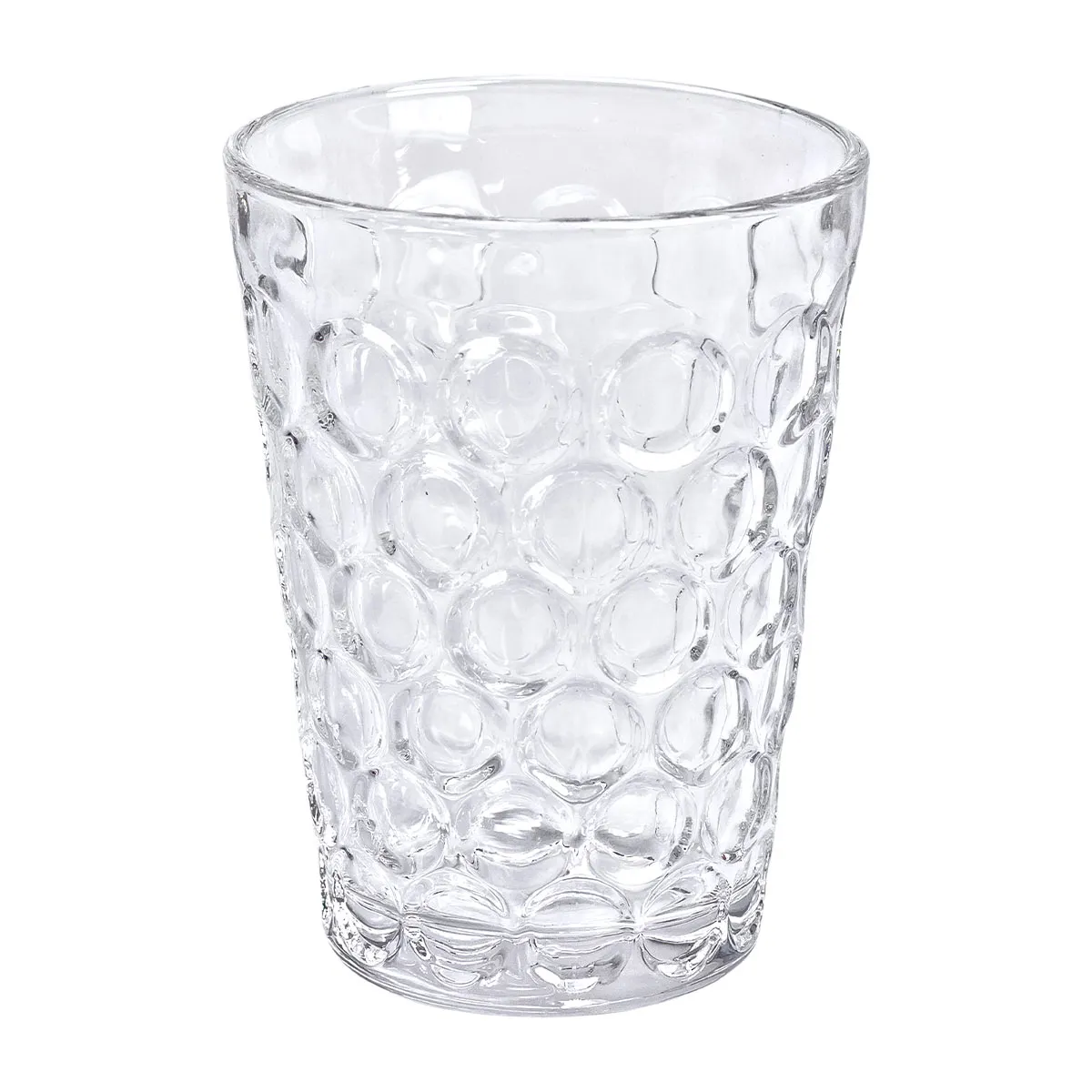 Каждый стакан имеет диаметр 8.5 см и высоту 11.5 см, что делает их удобными для удержания в руке и подходящими для разнообразных напитков, таких как вода, соки, лимонады и коктейли. Оригинальное тиснение на поверхности стаканов придает им эстетичный вид и добавляет уникальности сервировке.