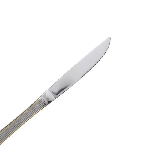Набор столовых ножей состоит из 6 штук, упакованных в блистерную упаковку. Классический дизайн сочетает серебристое лезвие и золотистую ручку, что придаёт приборам элегантный вид. Благодаря сдержанному оформлению, ножи легко сочетаются с различными стилями столовой посуды.