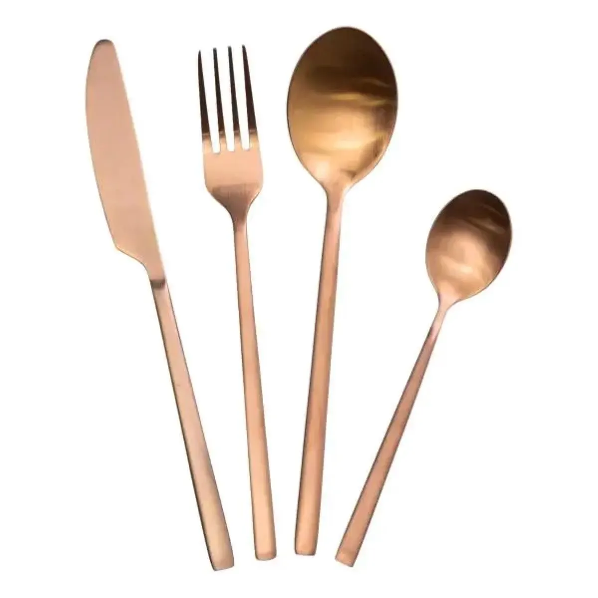 Набор столовых приборов на 6 персон включает 24 предмета, рассчитанных на сервировку как повседневного, так и праздничного стола. В комплект входят 6 столовых ножей, 6 столовых вилок, 6 столовых ложек и 6 чайных ложек, выполненных из высококачественной нержавеющей стали с бронзовым матовым покрытием. Такой набор отличается лаконичным дизайном без лишних декоративных элементов, что придает ему универсальность и отличную сочетаемость с любой посудой.