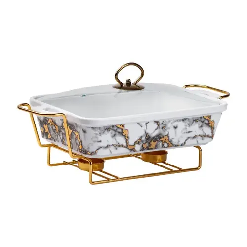 Настольная мармитница 1.5 литра мармит прямоугольный керамический 35х19х11.5 см для вторых блюд Мрамор HP1032