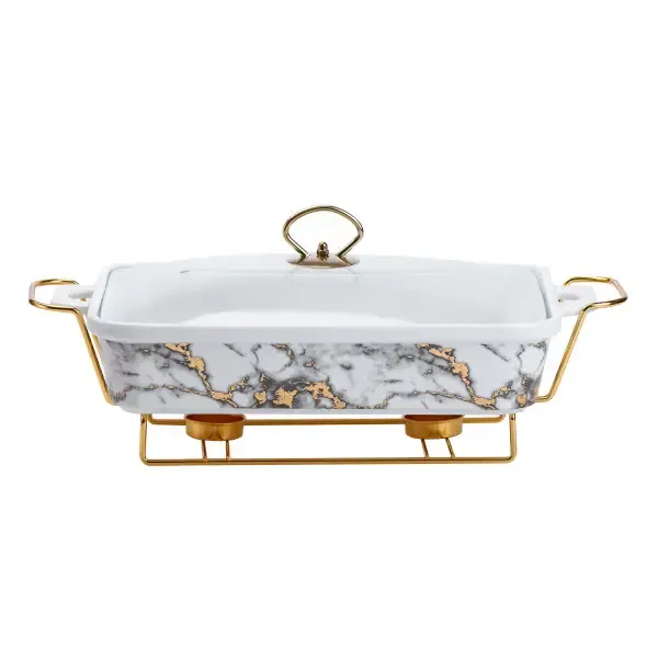 Настольная мармитница 2 литра мармит прямоугольный керамический 40х23х11 см для вторых блюд Мрамор HP1033