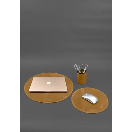 Настольный набор из натуральной кожи 1.2 желтый Crazy Horse включает три функциональных предмета: коврик под ноутбук, подкладку под мышку и кожаный стаканчик для хранения ручек и канцелярских принадлежностей. Изделия выполнены из качественной матовой кожи Crazy Horse с винтажным эффектом, что придаёт изделию особую эстетическую привлекательность и долговечность.