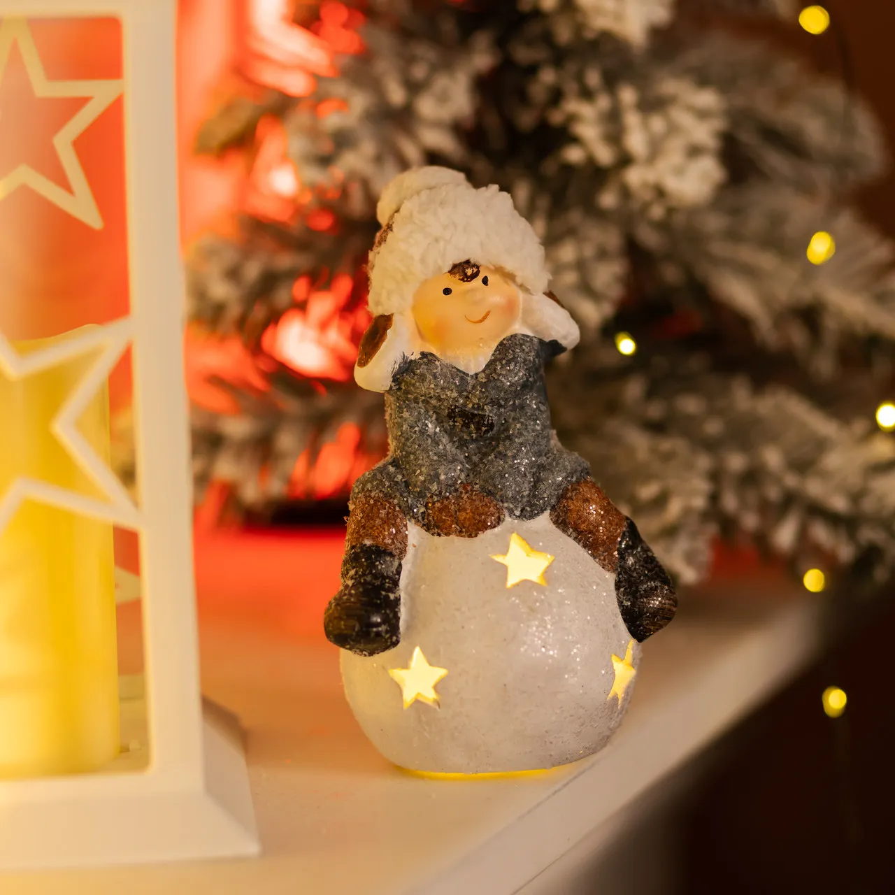 Новогодняя декоративная фигурка с подсветкой 10×8.5×16 см Новогодний декор Ребенок на снежном шаре из фарфора CR-5-20
