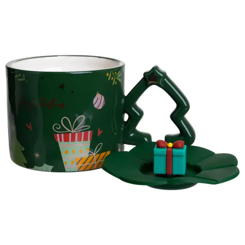 Главной отличительной чертой является эксклюзивный новогодний дизайн с ручкой в форме ёлочки и крышкой с 3D-фигуркой подарочной коробки, которые делают чашку не только функциональной, но и праздничной деталью интерьера. Высококачественный фарфор гарантирует надежность и безопасность при использовании.