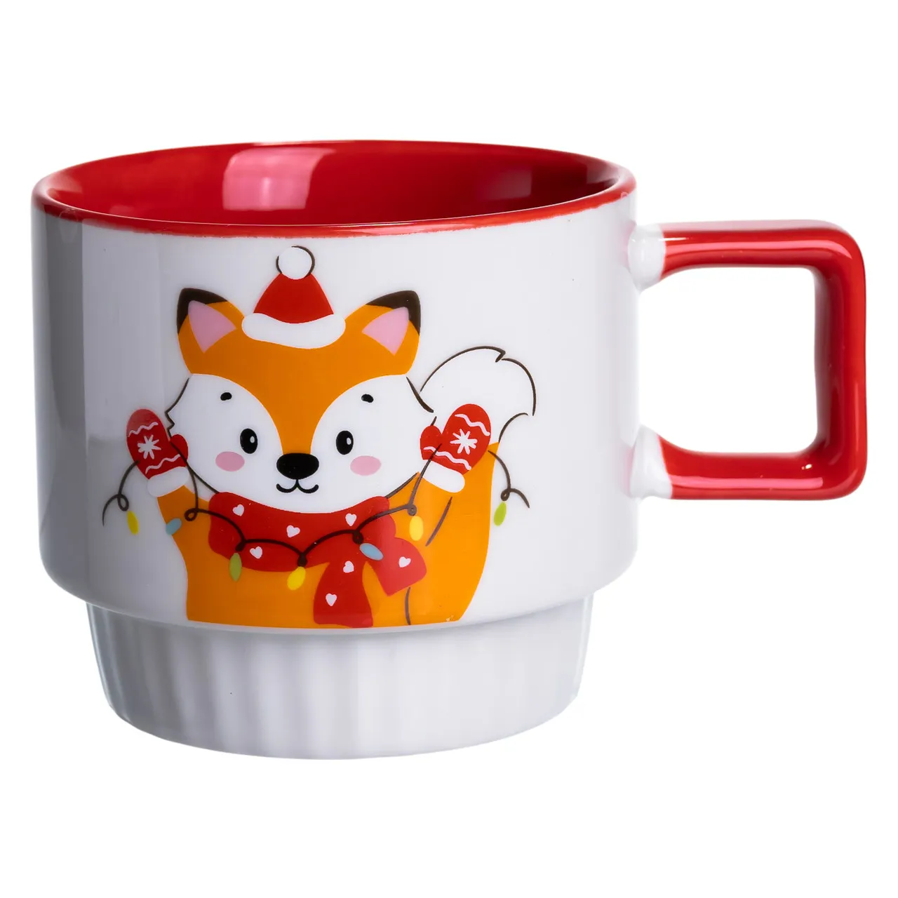 Новогодняя фарфоровая Новогодним лис 400 (мл) Белая с красным Yiwu FM-CS-50L