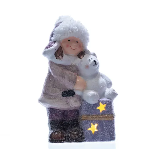 Новогодняя фигурка с подсветкой Девочка с медвежонком из фарфора 12×7×20 (см) новогодний декор для дома, квартиры на подарок CR-5-5