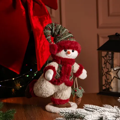 Компактные размеры и устойчивая основа позволяют разместить фигурку на полу, комоде, под елкой или в витрине — она гармонично впишется в любое помещение, не занимая много места. Доброжелательное выражение лица и наличие декоративной шишки добавляют образу снеговика особого очарования и праздничного блеска.