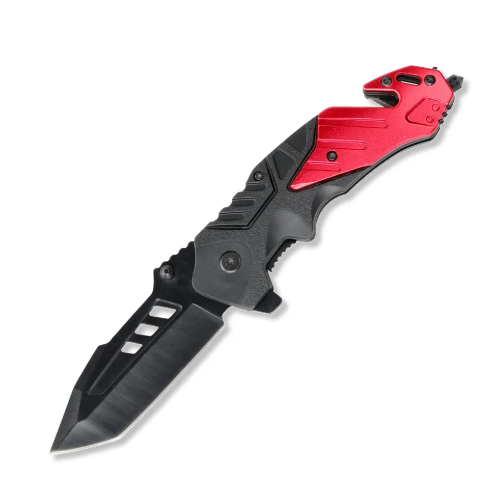 На рукояти расположена удобная стальная клипса, позволяющая фиксировать нож на кармане, ремне или тактическом снаряжении. В хвостовой части изделия предусмотрены такие полезные функции, как стропорез и стеклобой, предназначенные для экстренных ситуаций — например, порезания ремней безопасности или разбития стекла. Также на рукояти имеется овальное отверстие под темляк.