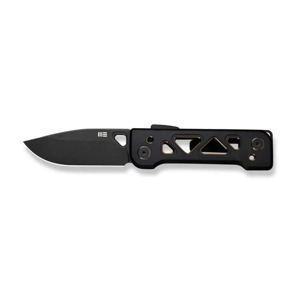 Главной особенностью дизайна Weknife Tyro является скелетонизированное руков'я с многочисленными отверстиями. Это решение делает нож максимально легким для удобного ношения и удержания. Золотой контур отверстий придает еще большую эстетику, превращая модель в настоящее произведение ножевого искусства.