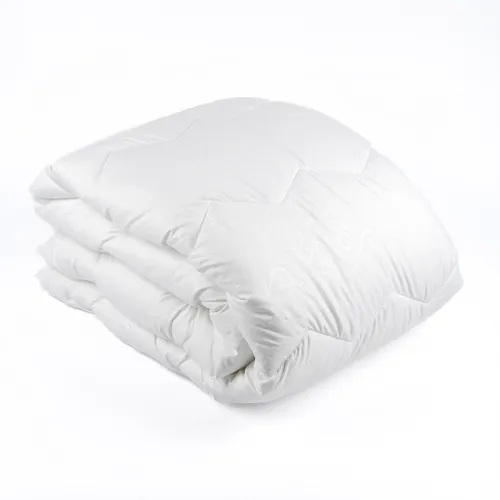 Стеганая поверхность помогает равномерно распределять наполнитель, что продлевает срок службы изделия и обеспечивает его долговечность. Цвет одеяла — белый, что делает его универсальным и элегантным дополнением интерьера любой спальни.
