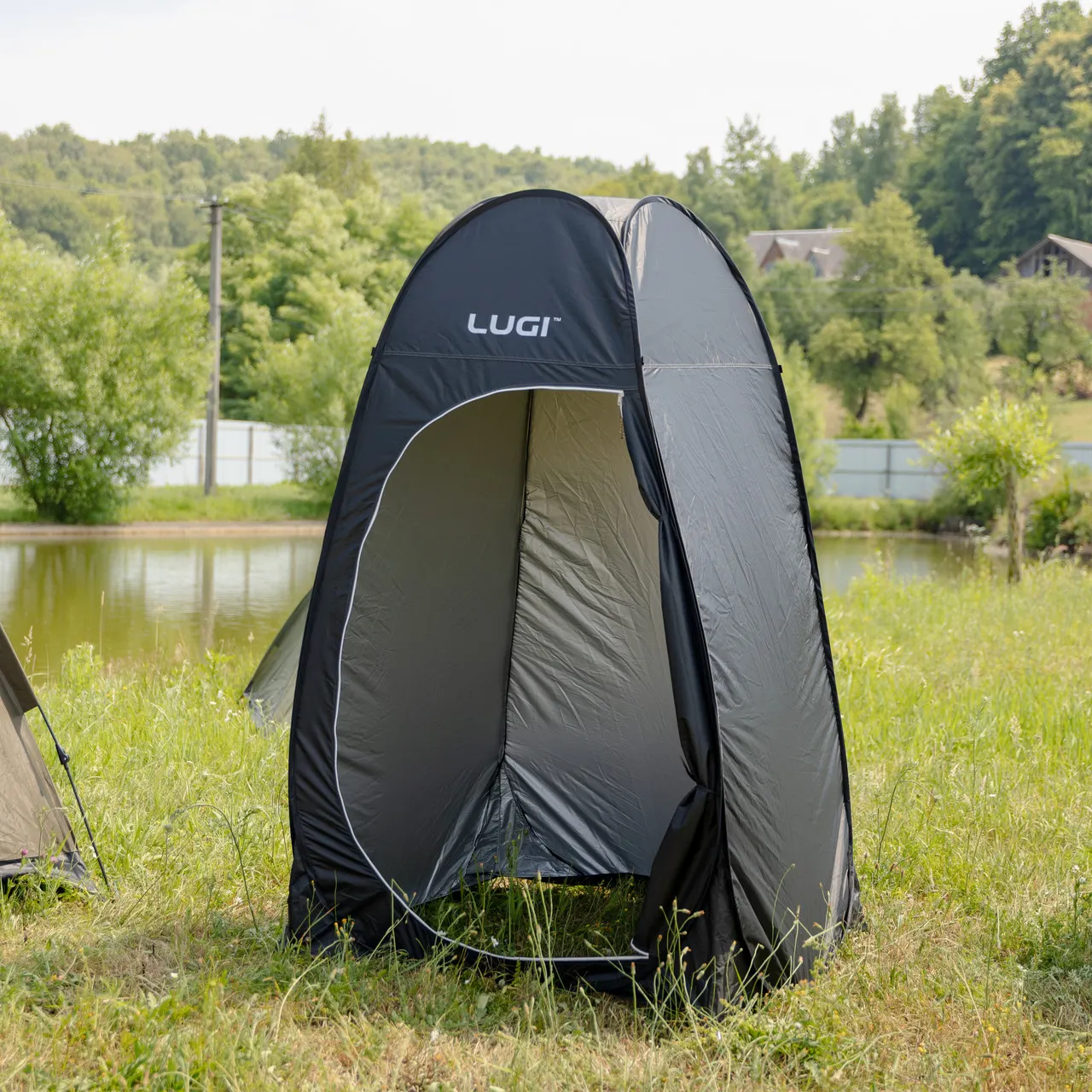 Палатка душ-туалет для кемпинга автомат 120×120×190 (см) LU-015DB Черный — функциональное решение для организации личного пространства на природе. Она предназначена для комфортного переодевания, принятия душа либо использования переносного туалета, что обеспечивает уединение и удобство в любых условиях: кемпинг, пляж, рыбалка или дача.