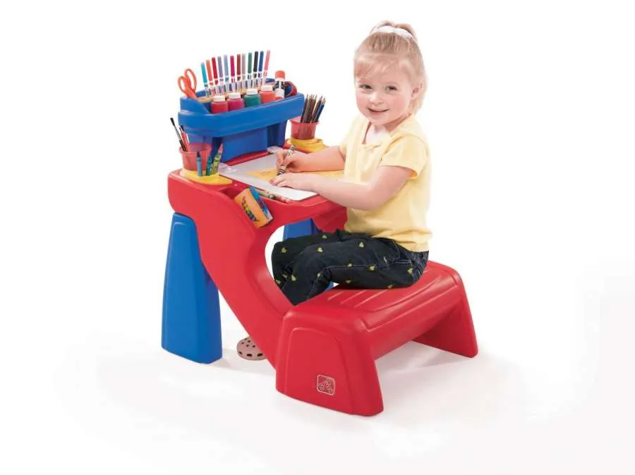 Парта с сиденьем для творчества WRITE DESK Step2 - компактный, практичный и стильный стол идеально подходящий для маленьких начинающих художников. Предназначенный для детей старше 1,5 лет, он помогает развивать навыки письма и рисования. Изготавливается он из прочного и безопасного пластика, что гарантирует долговечность изделия.