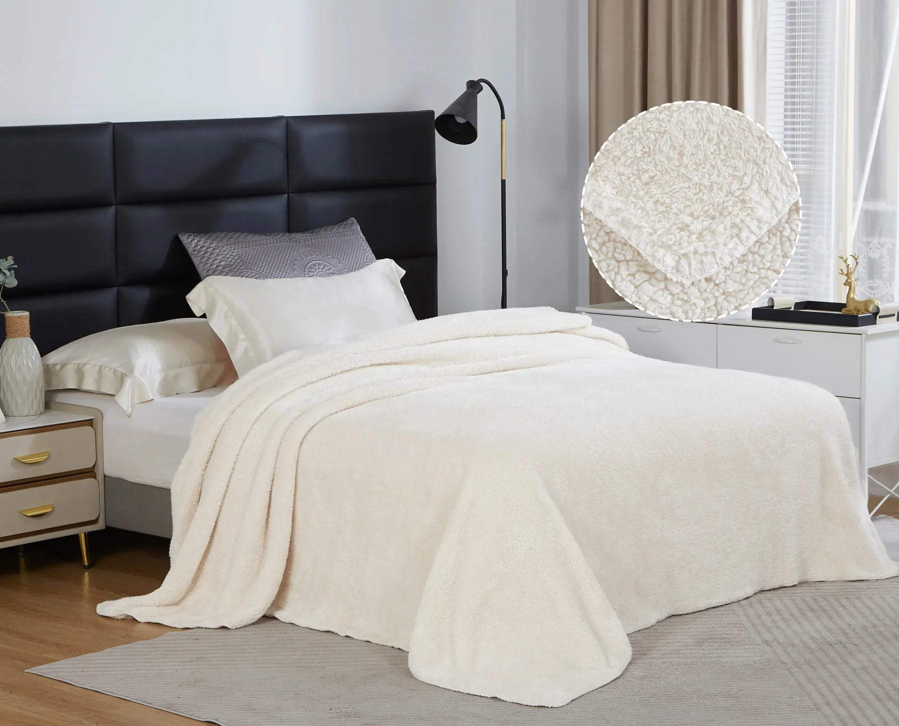 Плед-одеяло из шерпы и флиса молочного цвета размером 150 x 200 см представляет собой практичное и стильное решение для создания уюта в любых условиях. Мягкий и теплый материал сочетает в себе плюшевую шерпу и гладкий флис, что обеспечивает комфорт и долговечность использования. Благодаря двустороннему дизайну вы можете менять текстуру в зависимости от настроения и ситуации.