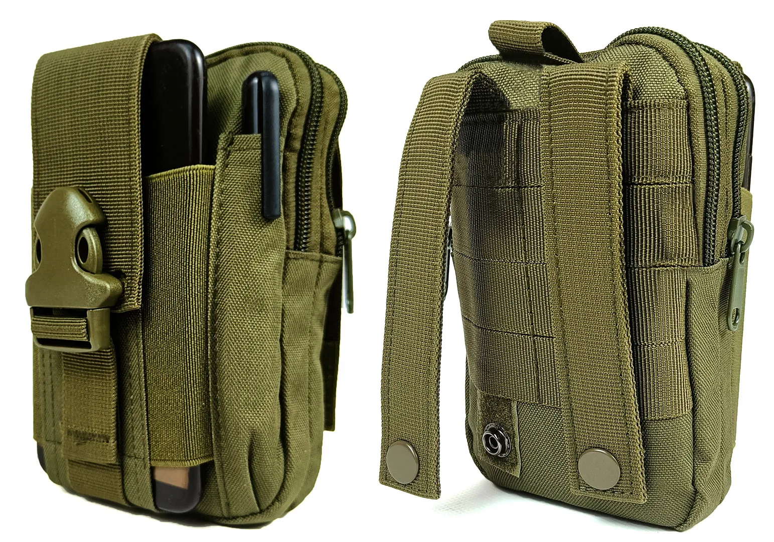 Подсумок-органайзер для телефона, документов и личных вещей олива (тактический утилитарный, на РПС, пояс, жилет, ремень, MOLLE)