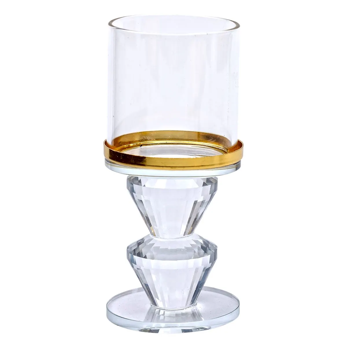 Подсвечник стеклянный на ножке с золотой окантовкой 6×13.3 см подсвечник бокал декоративный прозрачный HP-4-33M