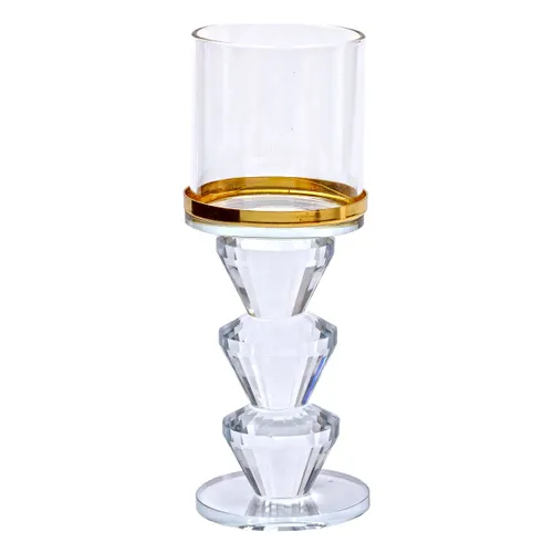 Подсвечник стеклянный на ножке с золотой окантовкой 6×16.5 см подсвечник бокал декоративный прозрачный HP-4-34L