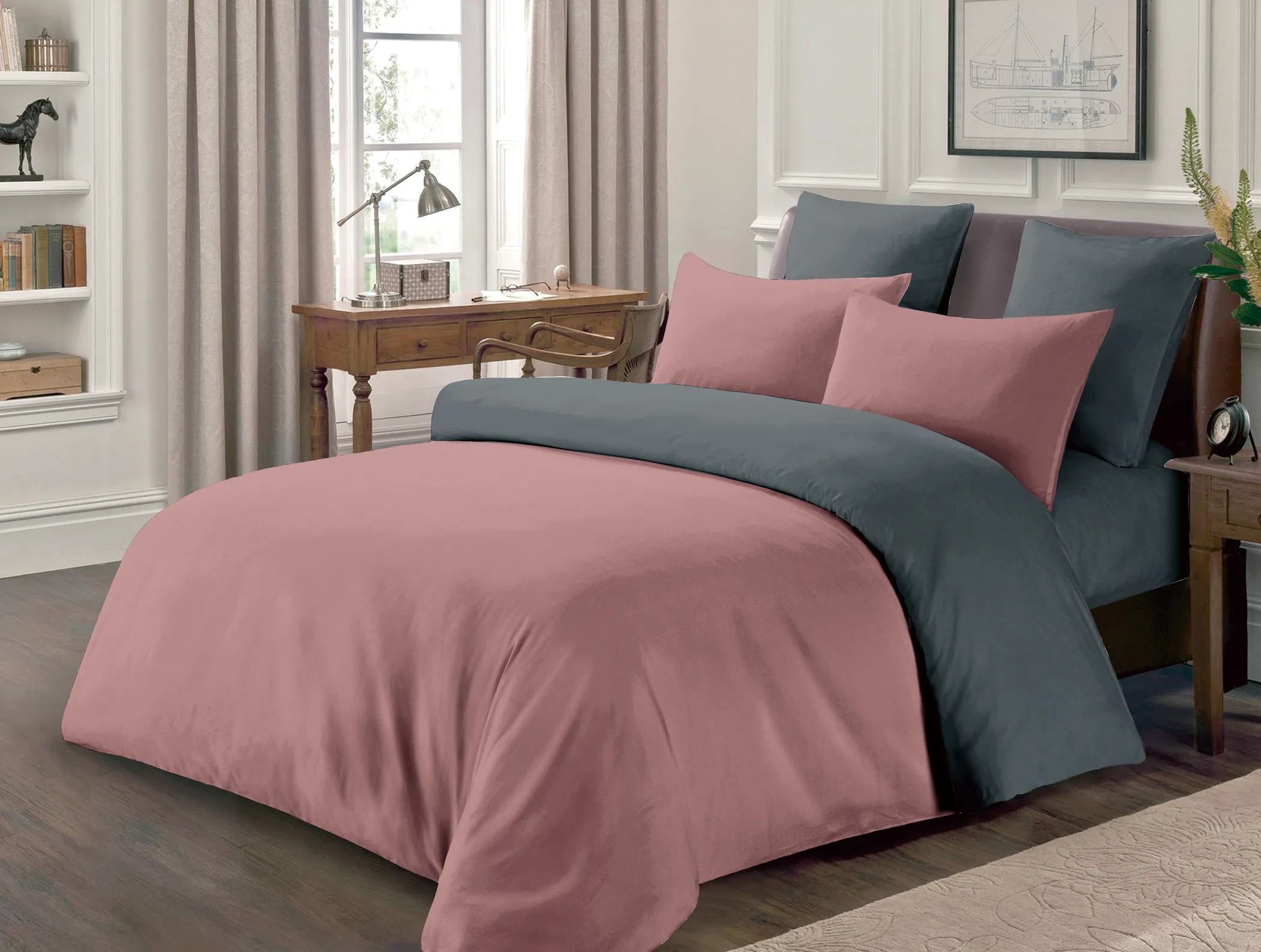 Двосторонній дизайн дозволяє легко змінювати атмосферу в спальні, надаючи їй свіжості та новизни.