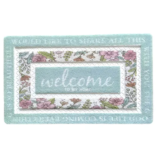 Яркий цветочный орнамент и текстовый принт с надписью "Welcome to my home" не только украшают интерьер, но и создают уют и положительный настрой при входе. Такой коврик становится элементом декора, который встречает гостей и членов семьи теплыми словами.