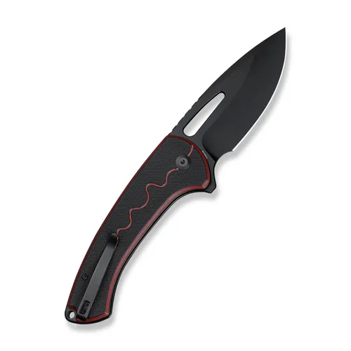 Рукоять выполнена из материала G10 — легкого и прочного композита, устойчивого к механическим повреждениям и воздействию влаги. Цветовая гамма включает чёрный и темно-красный оттенки, что придает ножу стильный и одновременно практичный внешний вид. Такие материалы гарантируют долговечность и комфорт при эксплуатации изделия.