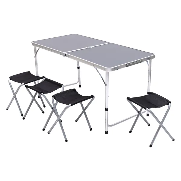 Раскладной стол + 4 стула кемпинговый набор для пикника, рыбалки, отдыха и туризма в черном цвете JY-12060B представляет собой продуманное решение для комфортного отдыха на природе. Этот набор мебели сочетает в себе портативность, практичность и удобство, что делает его идеальным спутником для активного времяпрепровождения вне дома. В комплект входят стол и четыре стула без спинки, выполненные из лёгких и прочных материалов, что облегчает процесс транспортировки и установки.