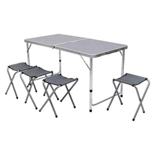 Раскладной стол + 4 стула кемпинговый набор для пикника, рыбалки, отдыха, туризма Серый JY-12060G