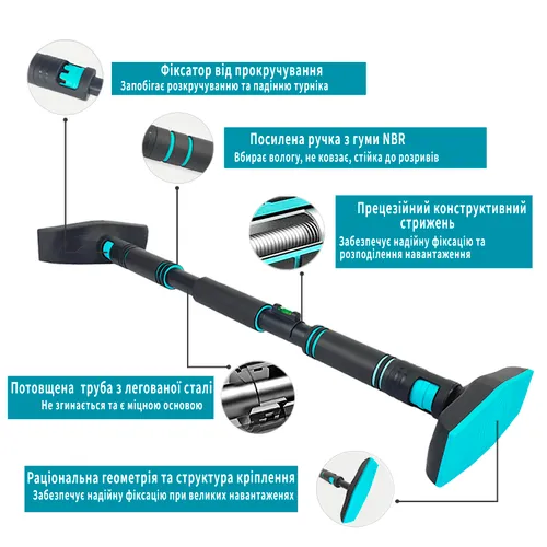 Характеристики "Раздвижной распорный турник EasyFit BlueGymBar 95-120 см"