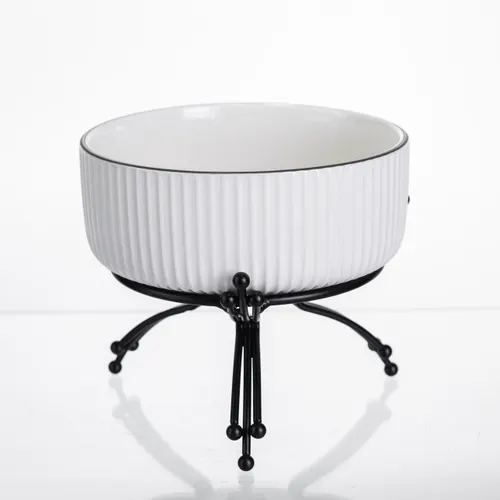 Данная салатница изготовлена из высококачественного фарфора, известного своей прочностью и долговечностью. Фарфор устойчив к царапинам и безопасен для использования с продуктами питания. Металлическая подставка окрашена в черный цвет, что придает изделию современный и стильный вид.