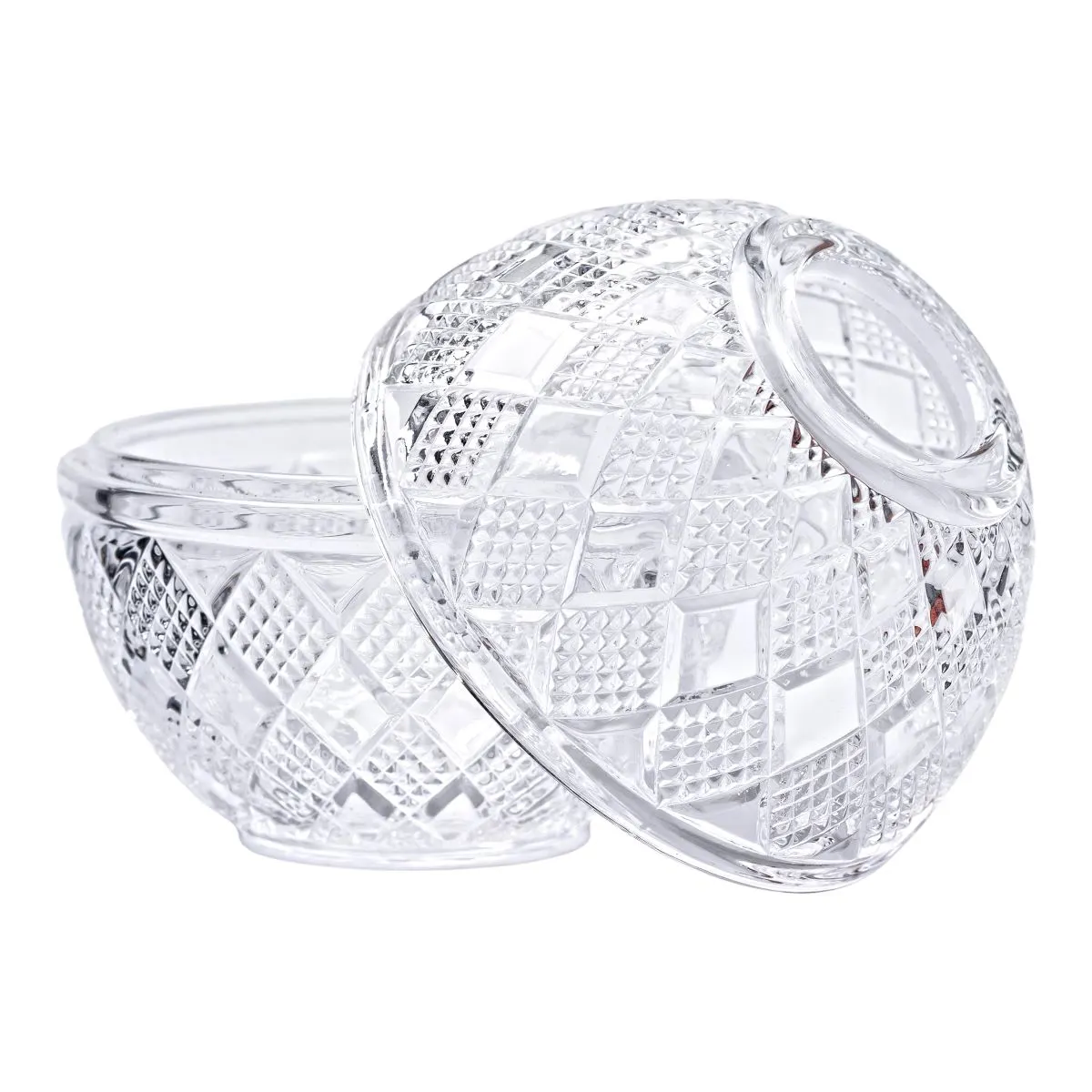 Главное отличие — уникальная форма в виде яйца и элегантная гравировка в виде ромбов, что делает аксессуар не просто функциональным, но и декоративным элементом интерьера. Использование прозрачного стекла высокого качества повышает общую прочность изделия и его визуальную привлекательность.