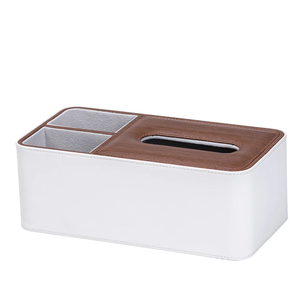 Салфетница-органайзер из эко-кожи с тремя отделениями размером 26.5*14*9.5 см в цветовой гамме белого с коричневым (модель HP9290) представляет собой многофункциональный аксессуар, который объединяет в себе стильный дизайн и практичность. Этот предмет поможет поддерживать порядок на вашем столе, обеспечивая удобное хранение салфеток и других мелких предметов.