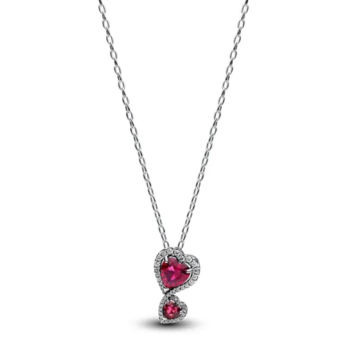 Серебряное ожерелье Pandora Красные сердца в ореоле