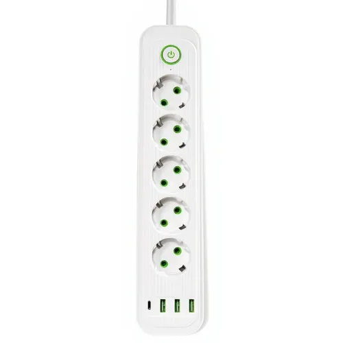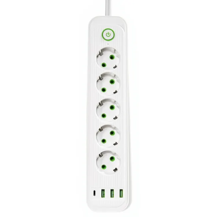 Сетевой фильтр-удлинитель белого цвета объединяет пять розеток, три USB-A порта и один USB-C разъём — практичное решение для одновременного подключения бытовых приборов и зарядки мобильной электроники. Формат с пятью розетками и четырьмя USB-портами даёт возможность рационально использовать одну точку электропитания, избавляя от необходимости использовать дополнительные адаптеры. Кабель длиной 3 метра обеспечивает комфортное подключение в пределах комнаты или рабочей зоны. Особенности сетевого фильтра-удлинителя: Огнестойкий ABS-пластик — материал корпуса обеспечивает безопасность и долговечность использования; Вертикальный формат конструкции — помогает экономить пространство и удобно организовать расположение устройства; Пять евророзеток — размещены таким образом, чтобы обеспечить комфортное одновременное использование нескольких приборов; Три USB-A и один USB-C на передней панели — удобная зарядка смартфонов, наушников, пауэрбанков и прочих гаджетов; Кнопка питания с индикатором — позволяет одним движением выключить все подключённые устройства. Характеристики сетевого фильтра-удлинителя: Количество выходных розеток: 6 шт; Выключатель: Да; Длина шнура: 3 м; Входная вилка: Евро; Выходная розетка: Евро; Цвет корпуса: Белый; Тип удлинителя: Сетевой фильтр-удлинитель; Состояние: Новый; Длина провода: 3 м. Удлинитель идеально подходит для домашнего использования, офисных помещений или учебных пространств. Обеспечивает удобную организацию рабочего места и упорядоченное подключение техники, создавая функциональную и аккуратную зону для работы или отдыха с множеством доступных разъёмов.