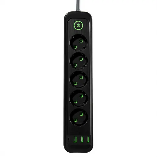 Удлинитель-фильтр с комплектацией из пяти розеток, трёх портов USB-A и одного USB-C идеально подходит для одновременной работы бытовой техники и зарядки гаджетов. Благодаря универсальной конфигурации вы сможете эффективно задействовать одну электрическую точку без необходимости использовать дополнительные переходники и зарядные устройства. Кабель протяжённостью 3 метра создаёт комфортные условия для размещения устройств в любой части помещения или на рабочем месте. Особенности сетевого фильтра-удлинителя: Корпус выполнен из огнеупорного ABS-пластика — обеспечивает надёжную защиту и долговечность конструкции; Вертикальная компоновка — позволяет сэкономить пространство и организовать аккуратное подключение множества приборов; Пять евророзеток с продуманным расположением — гарантируют беспрепятственное одновременное использование различной техники; Три USB-A порта и один USB Type-C на фронтальной панели — предназначены для зарядки телефонов, беспроводных наушников, внешних аккумуляторов и прочих портативных устройств; Кнопка питания со световой индикацией — даёт возможность мгновенно отключить всю подключённую технику одним нажатием. Характеристики сетевого фильтра-удлинителя: Тип устройства: сетевой фильтр-удлинитель; Количество выходных розеток: 1 шт.; Наличие выключателя: Да; Длина шнура: 3 м; Длина провода: 3 м; Входная вилка: Евро; Выходная розетка: Евро; Цвет корпуса: Чёрный; Тип удлинителя: Сетевой фильтр-удлинитель; Состояние: Новый. Данная модель прекрасно подходит для применения в домашних условиях, офисных помещениях или образовательных учреждениях, обеспечивая грамотную организацию рабочего пространства и удобное подключение электроприборов.