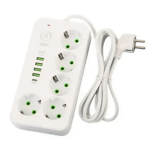 Сетевой фильтр-удлинитель с пятью розетками и USB портами позволяет организовать подключение нескольких устройств в одном месте. Формат 5 розеток + 4 USB-A + USB Type-C подходит для одновременного питания бытовой техники и зарядки мобильных гаджетов без дополнительных адаптеров. Это решение удобно использовать дома, в офисе или учебном пространстве, где важно оптимизировать доступ к электросети. Корпус изготовлен из огнестойкого ABS-пластика и имеет компактные размеры, что позволяет разместить удлинитель даже в ограниченном пространстве. Евророзетки расположены с учетом удобства подключения различных видов вилок. На корпусе предусмотрено 4 USB-A порта и 1 USB Type-C для зарядки смартфонов, планшетов, наушников и других устройств. Длина кабеля 5 метров обеспечивает гибкость в расположении, а кнопка питания с индикатором позволяет быстро выключать все подключенные устройства одновременно. Мощность до 2500 Вт дает возможность подключать бытовую технику средней нагрузки, что делает удлинитель практичным вариантом для ежедневного использования. Характеристики: Тип: сетевой фильтр-удлинитель Количество розеток: 5 Количество USB-A: 4 Количество USB Type-C: 1 Длина кабеля: 5 м Мощность: 2500 Вт Материал корпуса: огнестойкий ABS-пластик Тип розеток: европейский стандарт Кнопка питания: да, с индикатором Вес: 600 г Размеры: 20 × 10 × 4 см