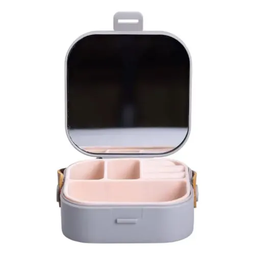 Внутреннее покрытие также пластиковое, обеспечивающее защиту украшений от царапин. Отсутствие декоративного оформления подчёркивает сдержанный стиль и универсальность шкатулки, а серый цвет гармонично вписывается в любой интерьер.