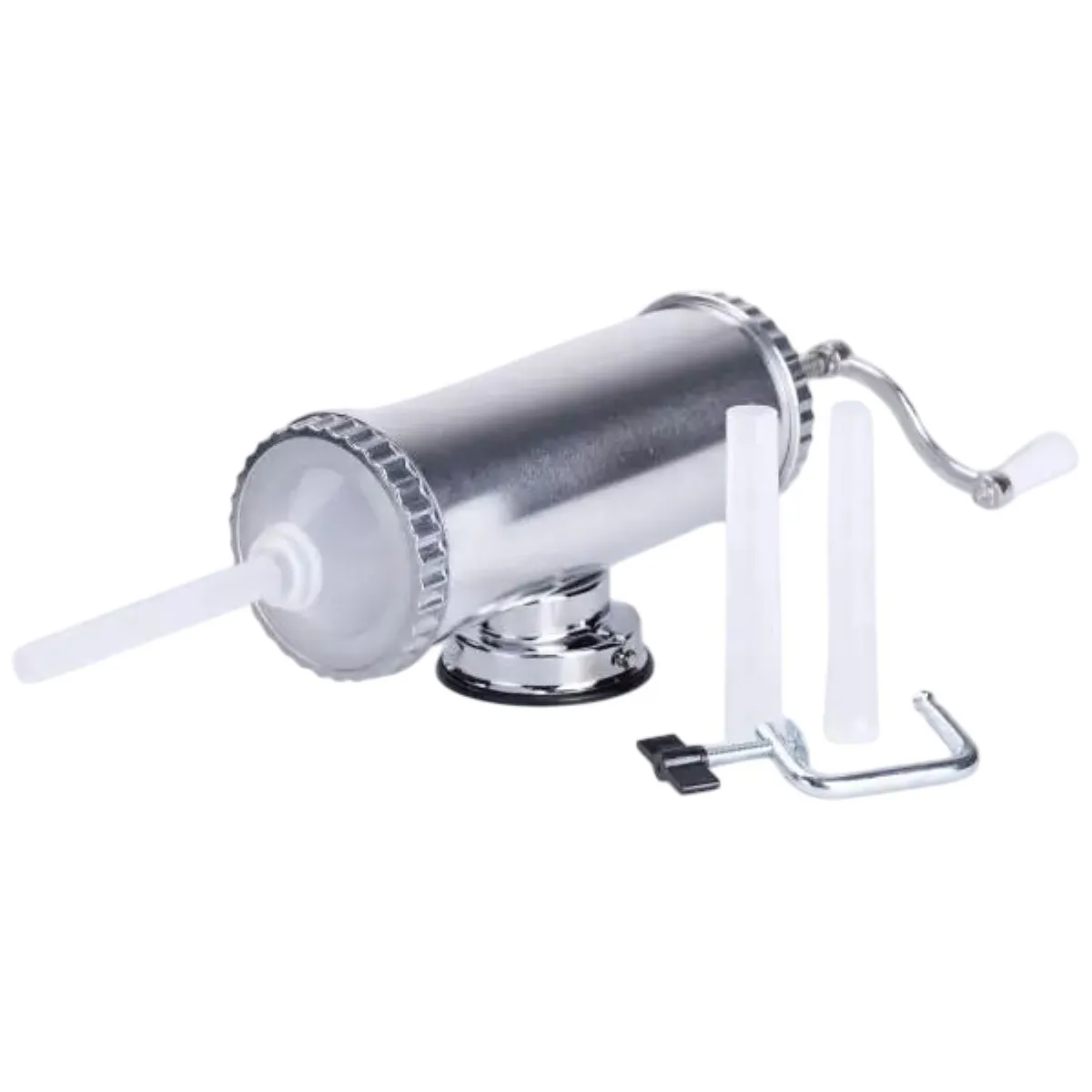 Ручной колбасный шприц удобен тем, что не требует электричества и может использоваться в любом месте, будь то домашняя кухня или дачный участок. Корпус из нержавеющей стали устойчив к коррозии и механическим повреждениям, что обеспечивает долгий срок службы без потери внешнего вида и функциональности.