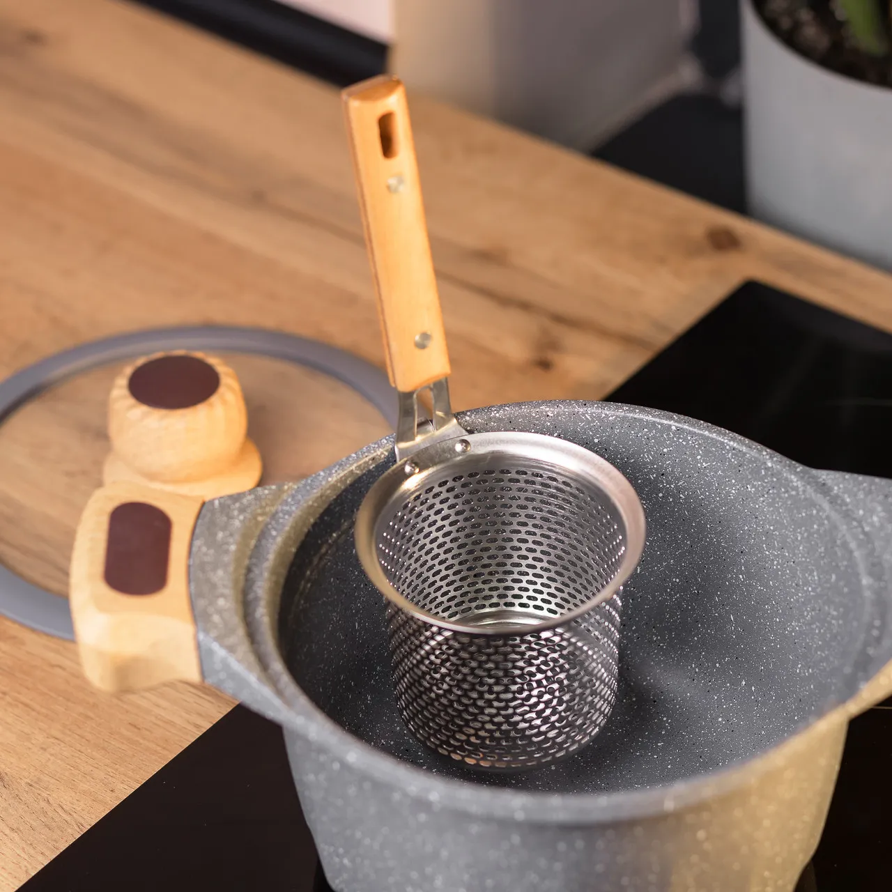 Это изделие особенно полезно при приготовлении блюд в фритюре, так как благодаря размеру отверстий масло эффективно стекает, а продукты остаются хрустящими и равномерно прожаренными. Также сито подходит для запаривания лапши и макарон, что упрощает процесс варки и минимизирует риск переваривания продуктов.