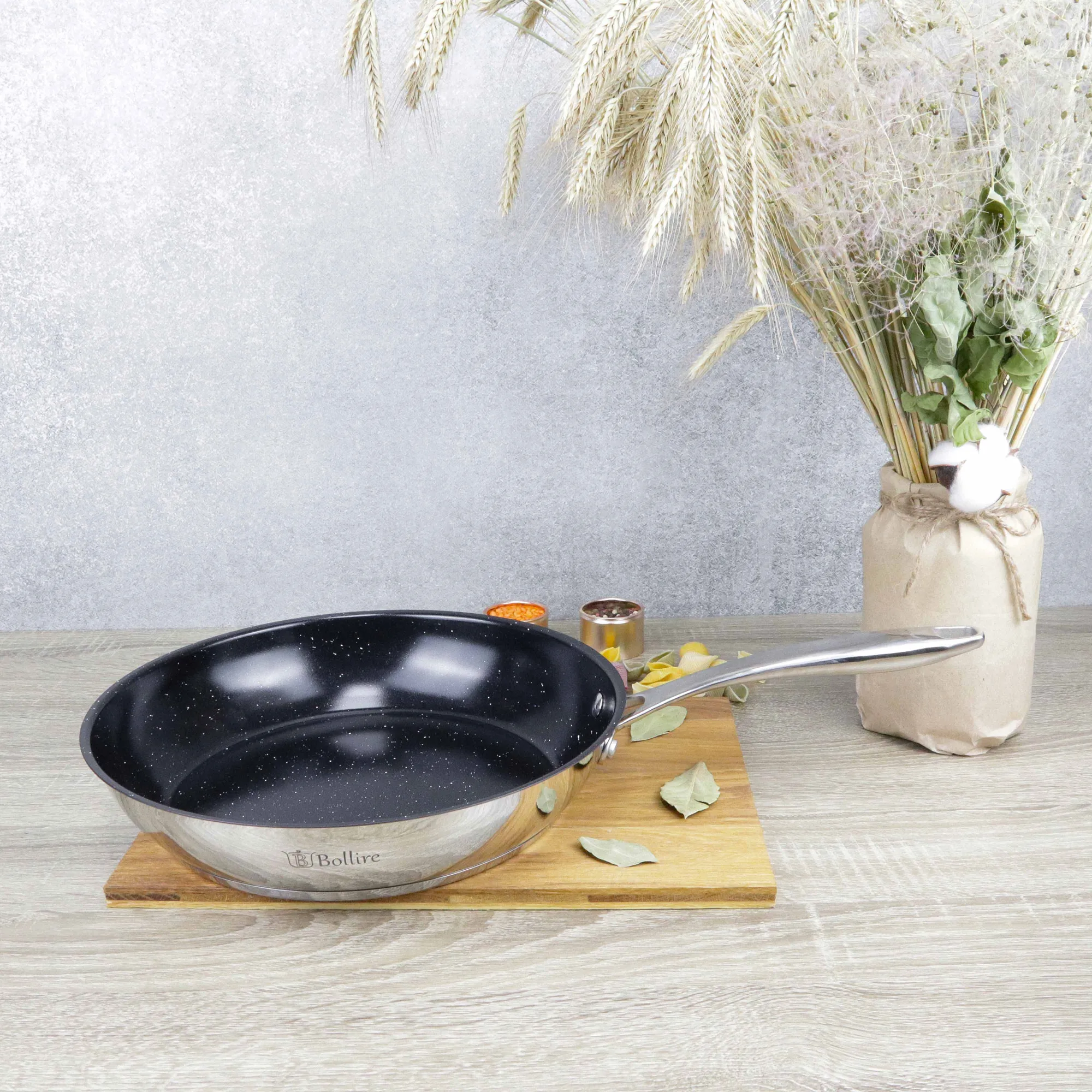 Прочная нержавеющая сталь гарантирует долговечность и устойчивость к коррозии, что делает эту сковороду надежным выбором на долгие годы. BLACK SAPPHIRE BOLLIRE сочетает в себе инновационные технологии и классический дизайн, который будет органично смотреться в любой кухне.