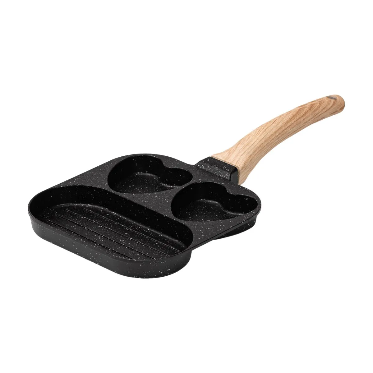 Данная квадратная сковорода идеально подходит для быстрого завтрака, где можно одновременно приготовить яйца, овощи и бекон или колбаски, не смешивая вкусы. Её удобство оценят и любители семейных обедов, которым надо одновременно приготовить несколько гарниров или вторых блюд.