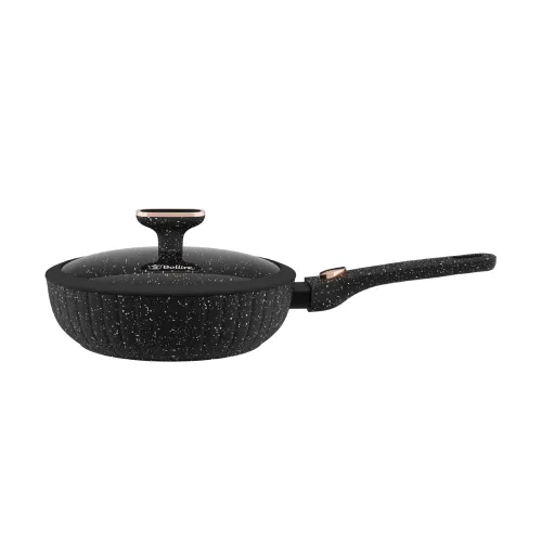 Сковорода Bollire SICILIA, вироблена з високоякісного кованого алюмінію, пропонує користувачам поєднання естетики та практичності. Внутрішнє покриття складається з тришарового Pfluon Marble, що забезпечує зносостійкість і стійкість до подряпин навіть при інтенсивному використанні. Завдяки антипригарному покриттю на зовнішній поверхні, догляд за посудом став простішим та ефективнішим.